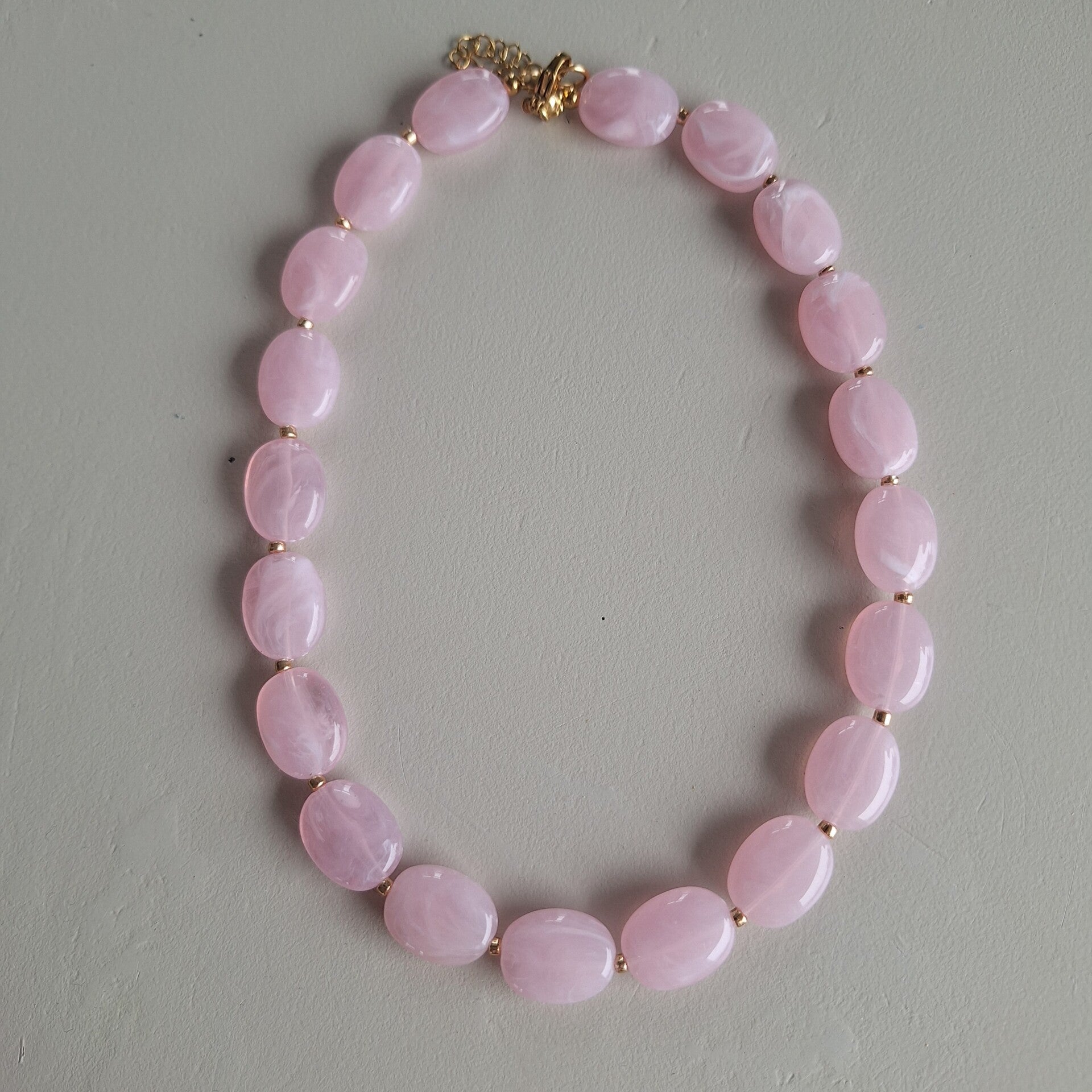 Lichtroze ovale kralen ketting